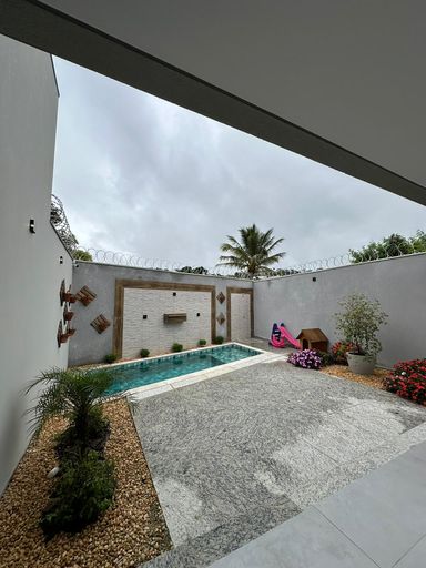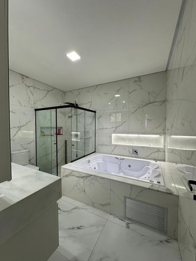 Possui sistema de aquecimento solar atendendo cozinha, chuveiros e espaço gourmet. A área de lazer é composta por piscina com preparação para aquecimento, hidromassagem e iluminação, ideal para momentos de convivência e relaxamento.