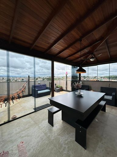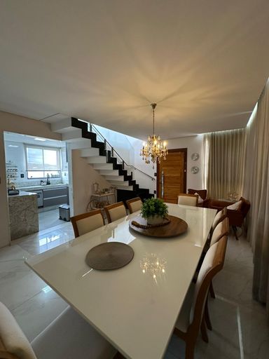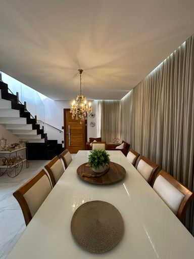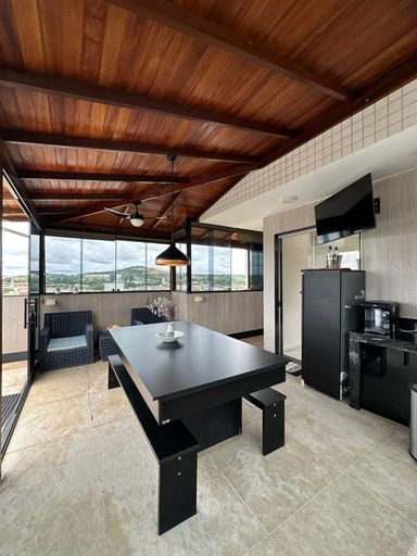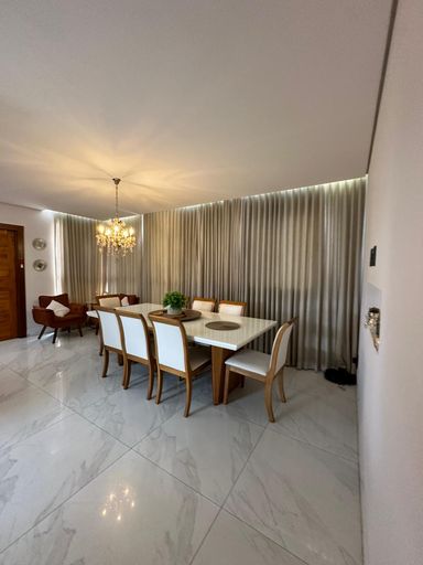 Lustre, cortinas, lava-louças, fogão, forno, armários planejados nos quartos, persianas, ar-condicionado na sala e na suíte, além de mesa de jantar conversível em mesa de sinuca.